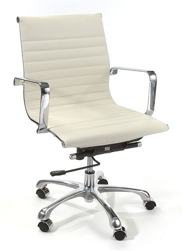 Base CROMADA de 5 ramas con ruedas de goma. Tapizado en cuero ecológico color NEGRO o BLANCO.